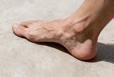 腳掌平貼地面,試著將大拇趾根部往腳跟方向收縮,使足弓自然升高。
